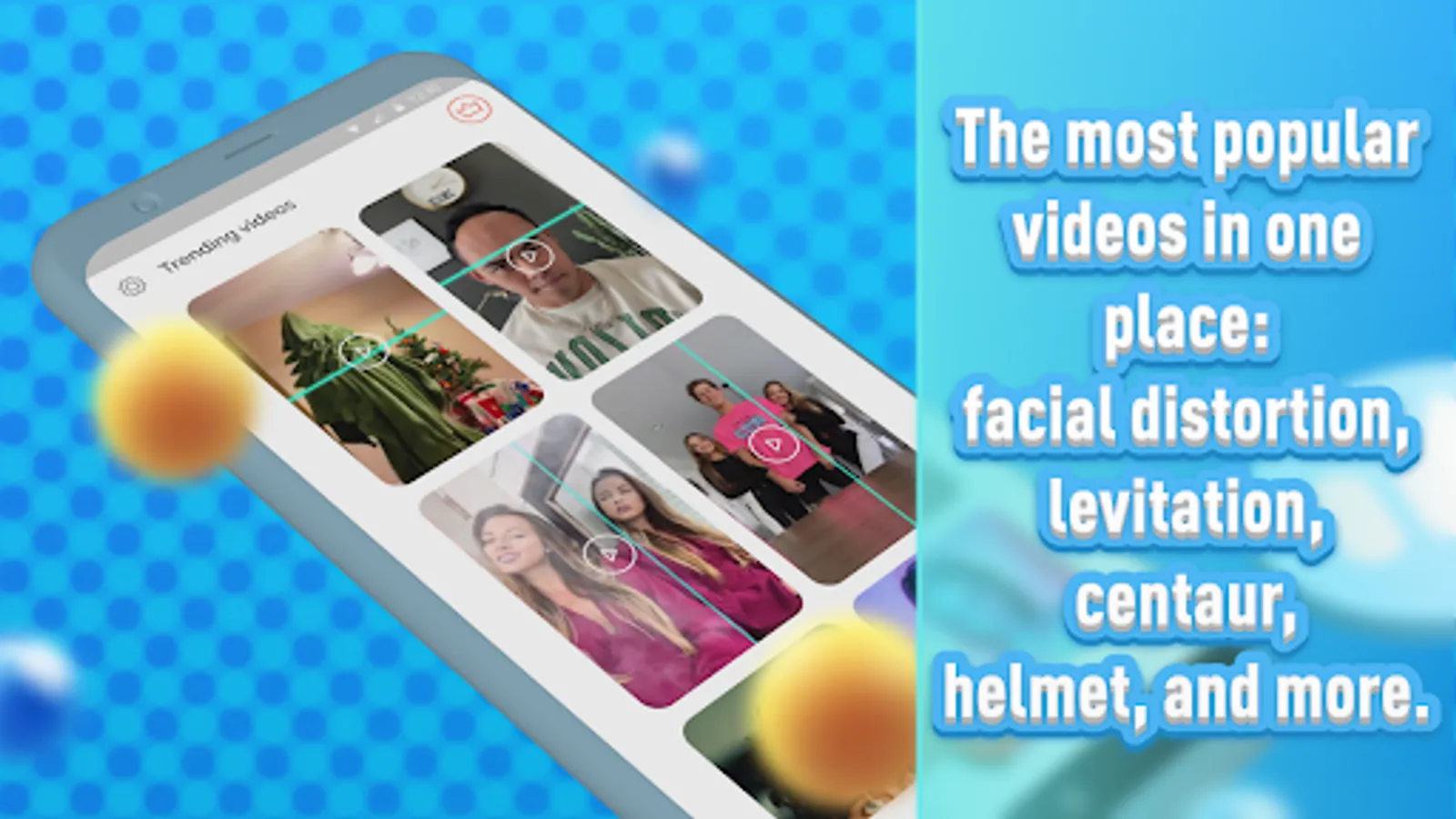 Free Time Warp Scan effect and a warp slider give you to shoot video for social media. The Time Warp Scan, face warp game app allows you to generate fascinating visual facial deformity, freeze illusions, crooked faces, stretching, timewarp. And it also has a face warp game – try to repeat timeworn taping with the timewarpscan effect. The Time Warp Scan result and a face warp game will give you to shoot your trending clip for tiktok.