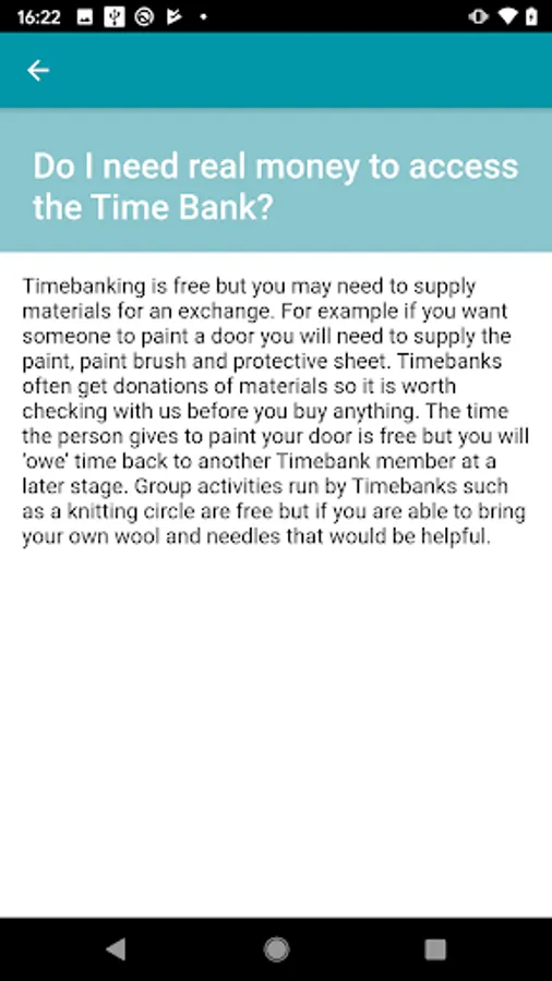 In the 'About' section you'll find all the common questions about Timebanking answered: What is it? How does it work? What about safety? And more!