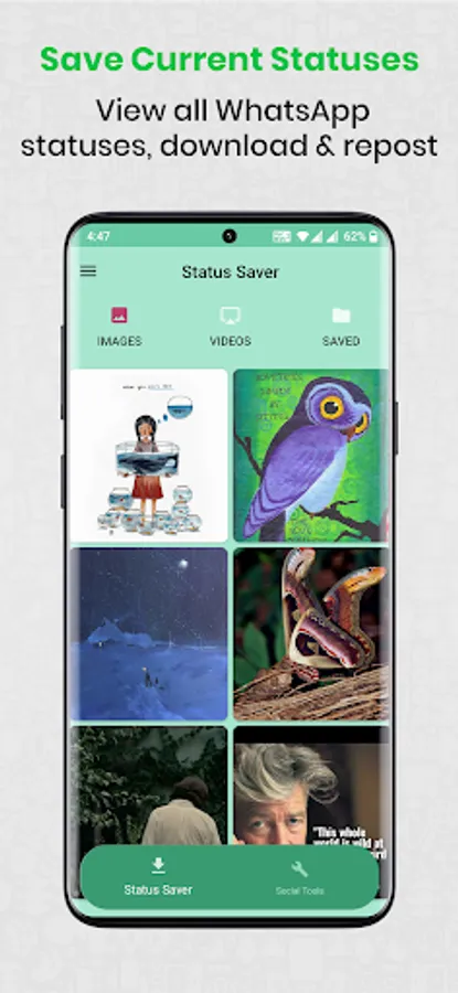 Status Saver for WhatsApp, can help you to download WhatsApp Status, images, and videos for free. Now save any of your friend's videos and pictures without any trouble and quickly repost, without using your data. Download the app and experience the real fun of social media at its best.
