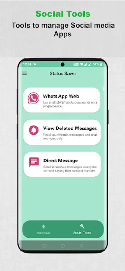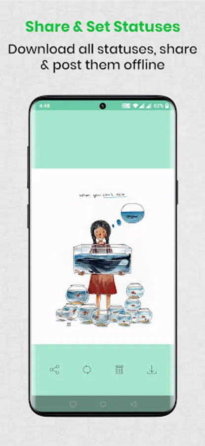 Core functionality of the app is to enable users to view, save and share Whats App Statuses.