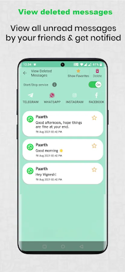 ⚫ With deleted messages recovery app you are able to recover messages and any media file.
