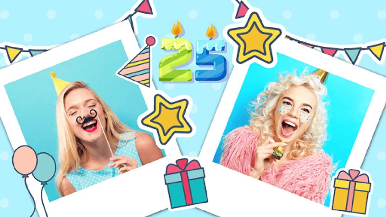 This app helps you create awesome looking birthday photos with tons of styles, stickers and beautiful fonts. Birthday Photo Status Maker will help you create birthday photo collages with plenty of frames.