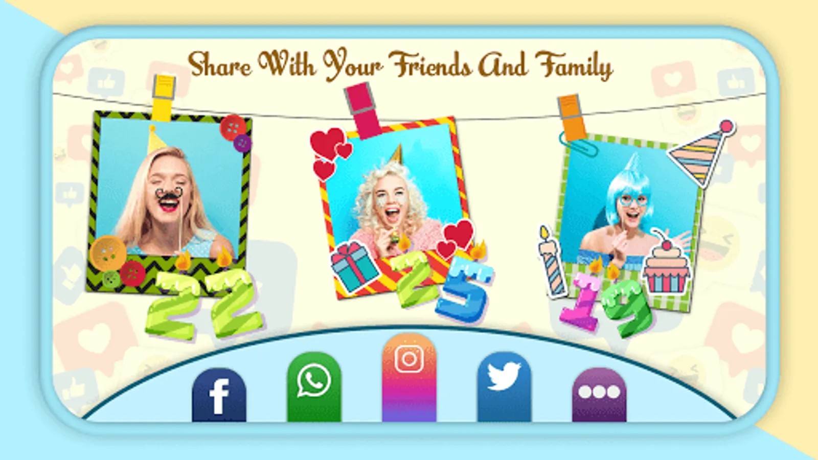 - Share your Birthday Number Photo Frame to social networks like whatsapp, facebook, twitter & many more.