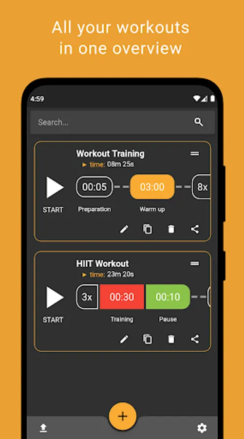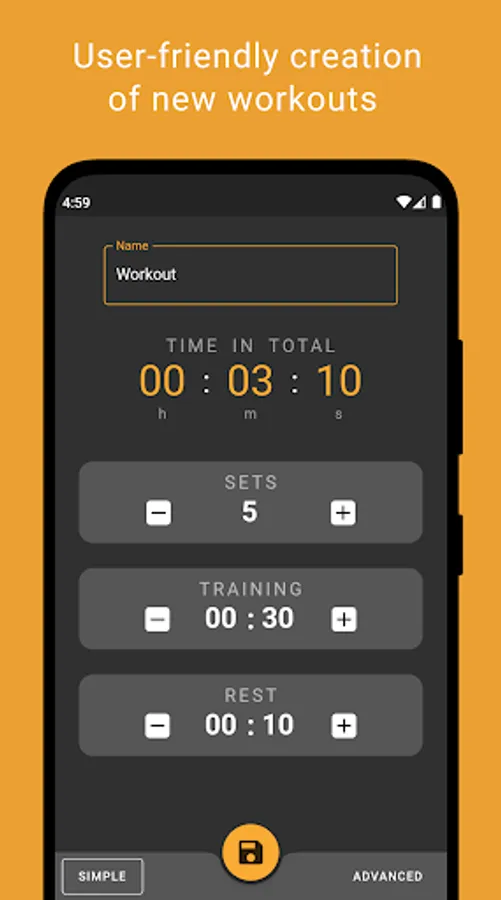 The app focuses on the most important aspects to allow you a simple training without much effort in the creation of individual training units. The modern and minimalist design supports you in creating completely free and individually configurable workouts. Choose your own colors and sounds. Have fun with it!
