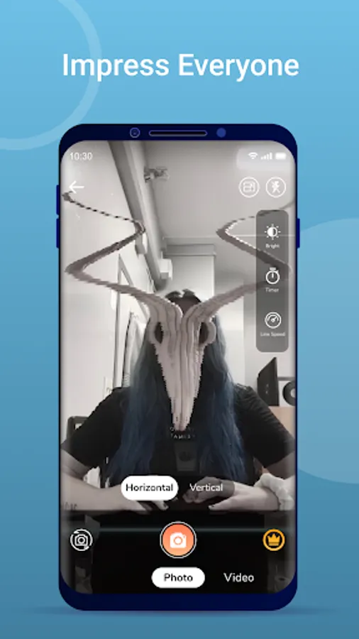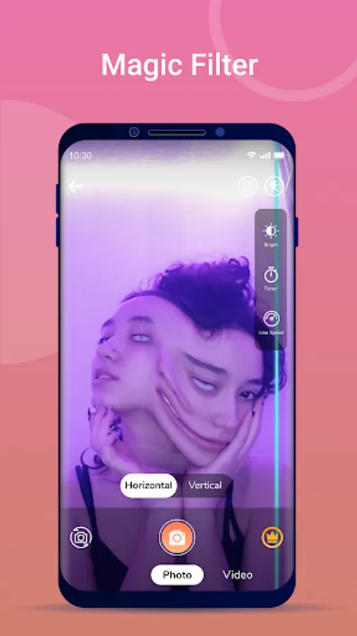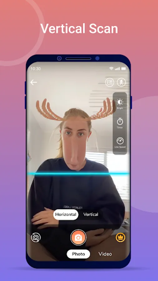 Time Warp Scan Photo Filter helps you catch up with the trendy effect that is viral on social networking sites with Time warp scan. This is a filter for videos and images that is extremely popular with young people recently. Now you can use this trendy face warp filter for free with Time warp effect.