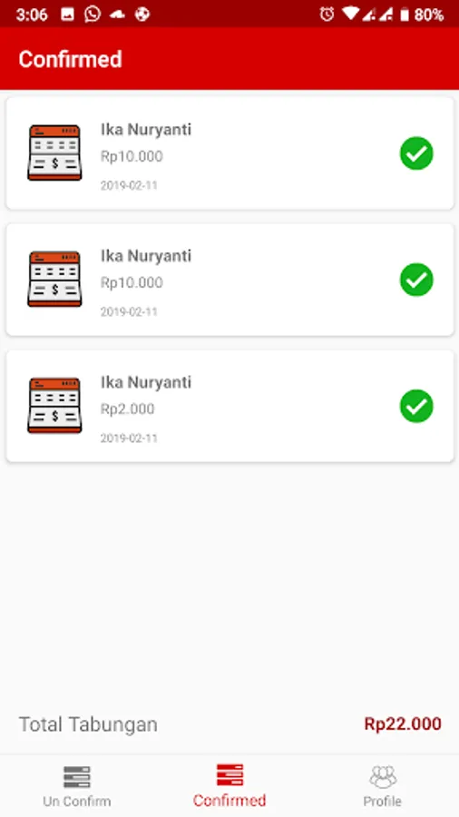 The student savings application is an application that makes it easier for students to save, and see the amount of savings through an application,