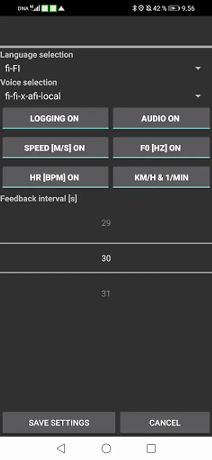 - Select feedback language and voice (uses Google Text to Speech, which has many languages on offer)
