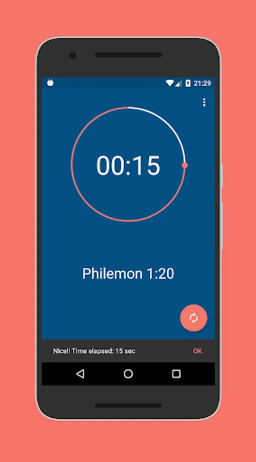 The app will generate random Bible passages for you and will count down how many seconds it takes you to find the passage.