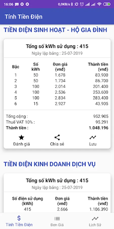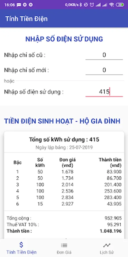Support you to calculate the electricity used in the month according to the latest formula and price in 2019
