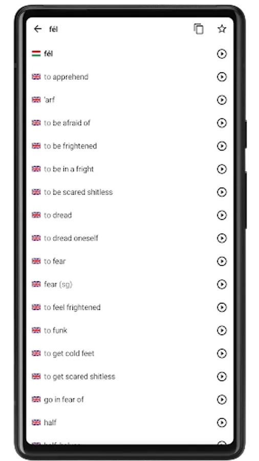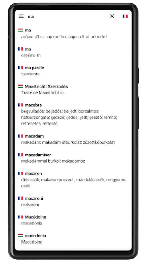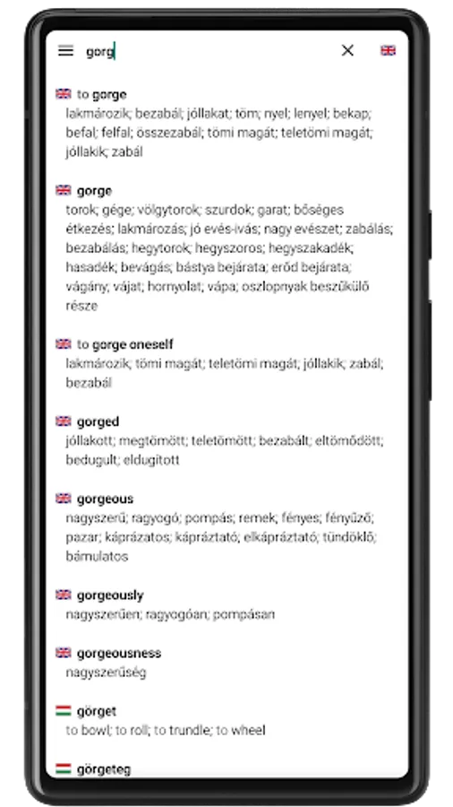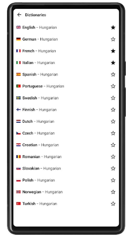 Offline English-Hungarian dictionary, plus German-, French-, Italian-, Spanish-, Portuguese-, Swedish-, Finnish-, Dutch-, Czech-, Croatian-, Romanian-, Slovakian-, Polish-, Norwegian-, Turkish-Hungarian too.