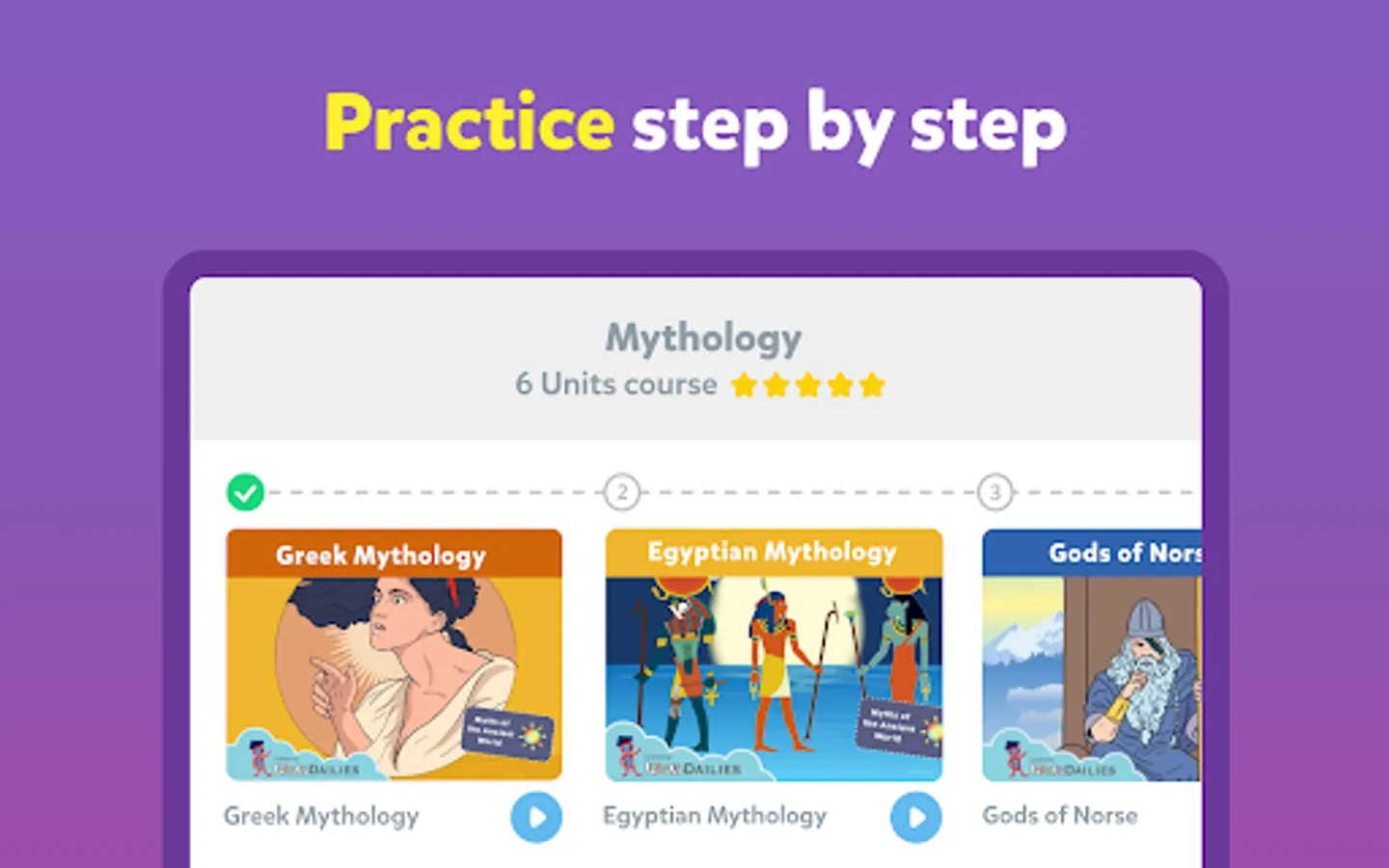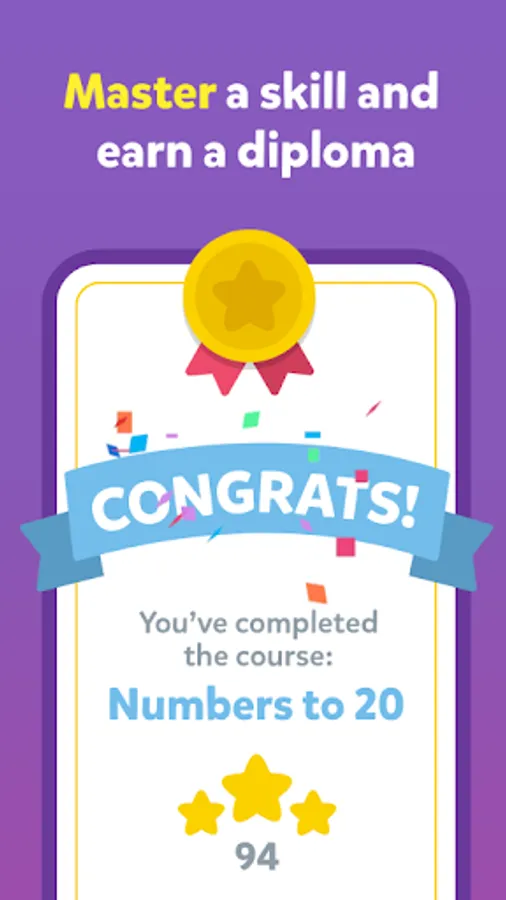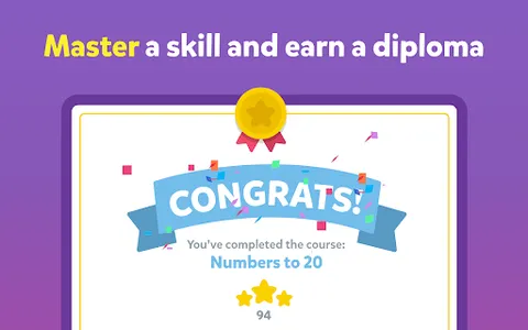 Using a step-by-step structure of interactive games, each course ensures your child's progress in the chosen subject. In this active learning exprience, they’ll get to practice until they master their skills and even get a diploma.