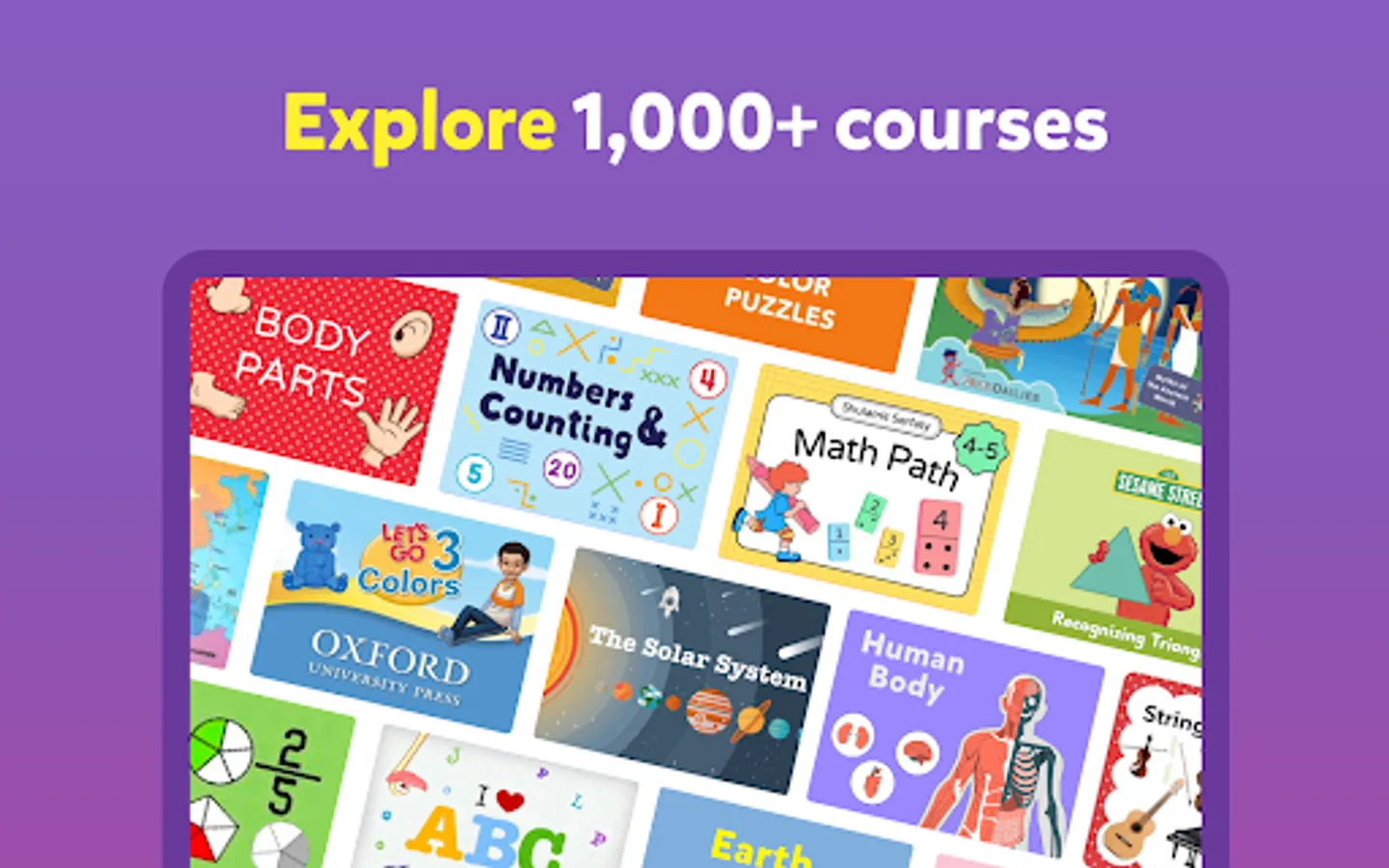 – Practice Courses: Subjects that your child may need to improve in, such as Counting & Numbers, Fractions, Learn the Alphabet, Pre-reading