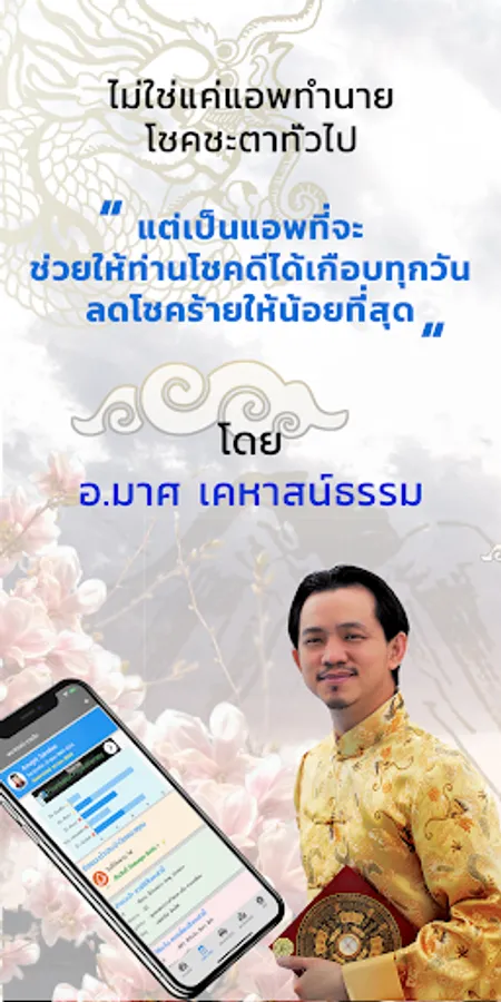 In which Master Ajarn Kesattham brings ancient science such as feng shui, Chinese horoscope to combine with the future science like application, resulting in the "Luckier" or "lucky person" to be Your assistant is the master of fate.