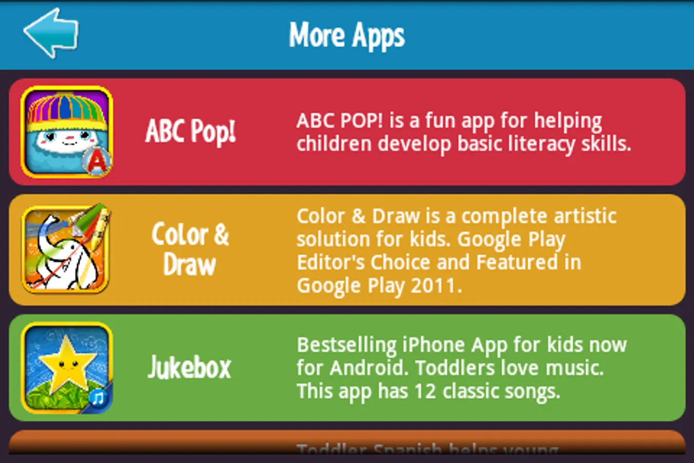 Learn and Quiz modes are available. Learn mode cycles through the number sequence, 1 to 10. Kids will gain proficiency in recognizing the number symbols, matching them with the number names and practice counting. They can also choose to play a fun, multiple-choice, number recognition game.