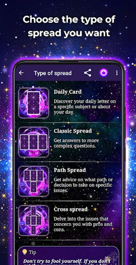 - Yes or No Tarot: Find a clear answer to specific doubts.