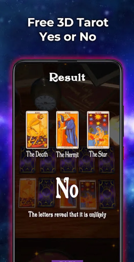 Thanks to the relaxing background sounds that have been added, it allows you to achieve greater concentration for better results in real tarot runs.