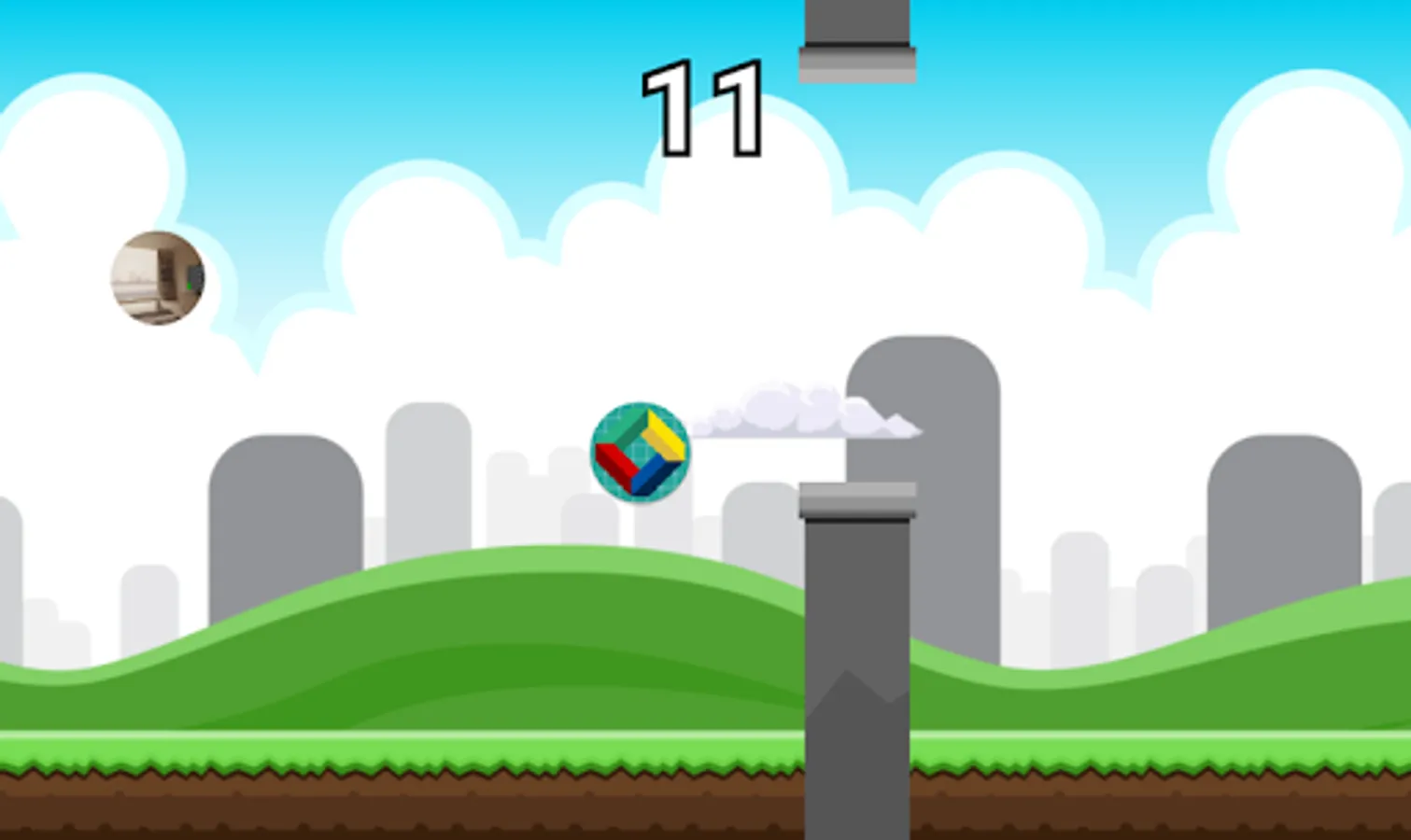 The player has to navigate through obstacles, which appear on the top and the bottom of the screen, by tapping the screen and thus making the player character jump up briefly. Additionally, throughout the game there are HTL logos moving from the right to the left side of the screen which give extra points when catched by the player character.