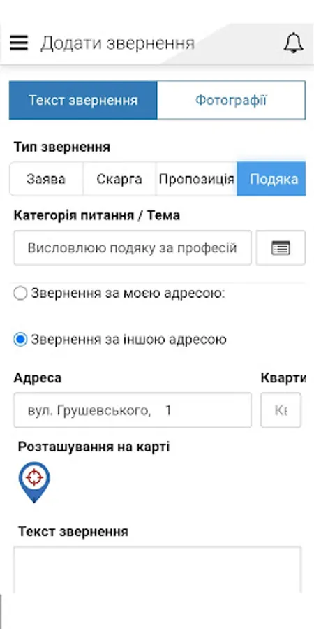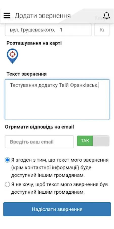 The application of the Ivano-Frankivsk TG Rapid Response Service was created for the purpose of quick and convenient handling of a problem, initiative or proposal.