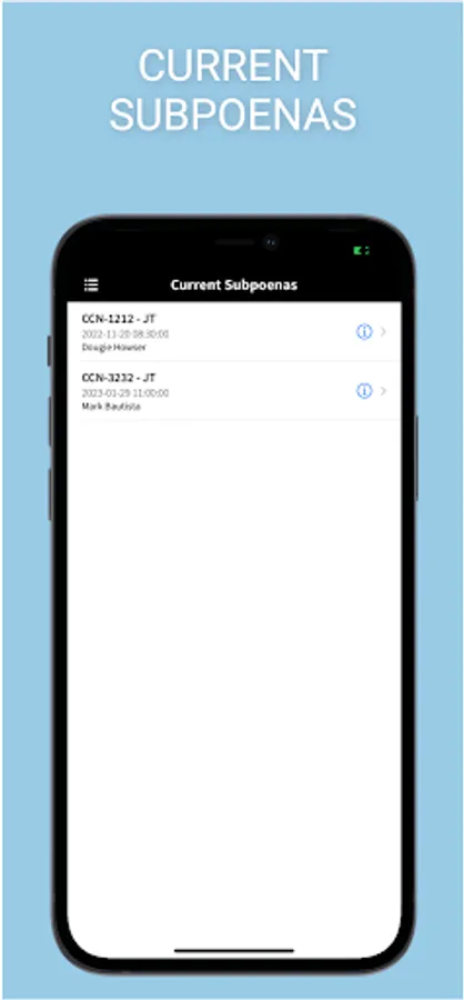 The iSubpoena app allows you to push all of your subpoenas through the automated integration with your current case management system or utilize the web based application for input, reporting and management. The iSubpoena service also sends emails and texts for those users without smartphones. The iSubpoena service is a revolutionary service which will eliminate the need for personal or sub-service of subpoenas to professionals within the court system. Law Enforcement Officers, Interpreters, Expert witnesses, Probation Officers and any regularly used professionals in court cases can utilize the iSubpoena service with associated smartphone application.