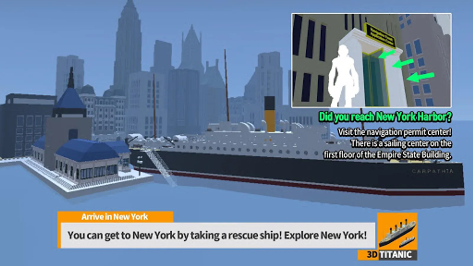 - Have you arrived at New York Harbor? Then find the Empire State Building! You will be able to operate the ship.