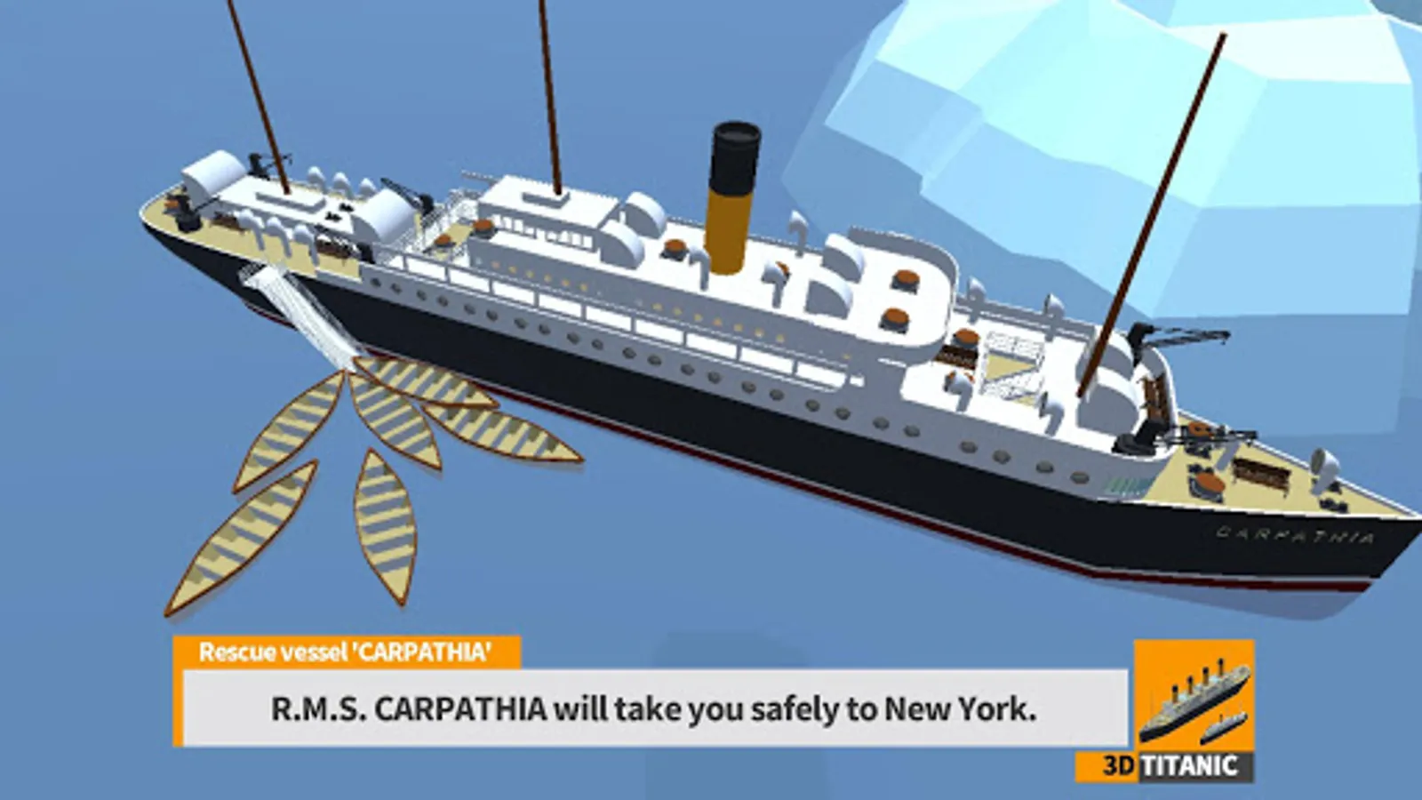 - If you are on a lifeboat, you can board a ship called 'Carpathia' which heads for New York.