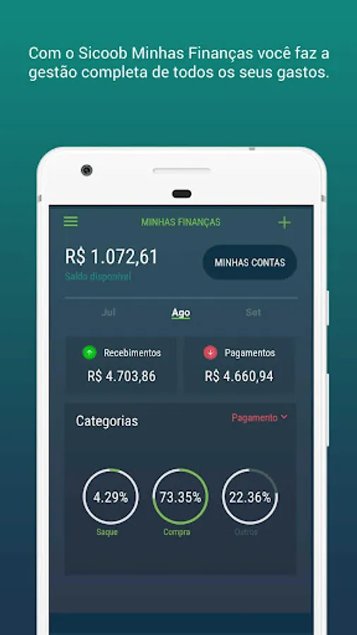 Sicoob Minhas Finanças is intended for anyone who wants to manage their personal finances, but the Sicoob member has exclusive features that allow the centralization of all income and expenses in the application, in addition to being able to consult transactions made on the Sicoobcard card.