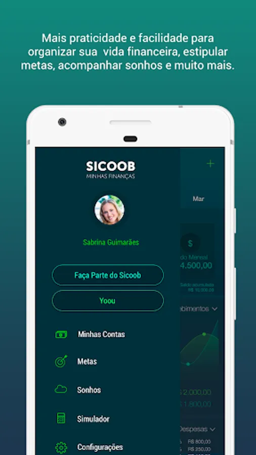 Create goals for the monthly budget, track dreams and simulate financing and investments. Enjoy all the benefits that Sicoob Minhas Finanças offers. Download now!