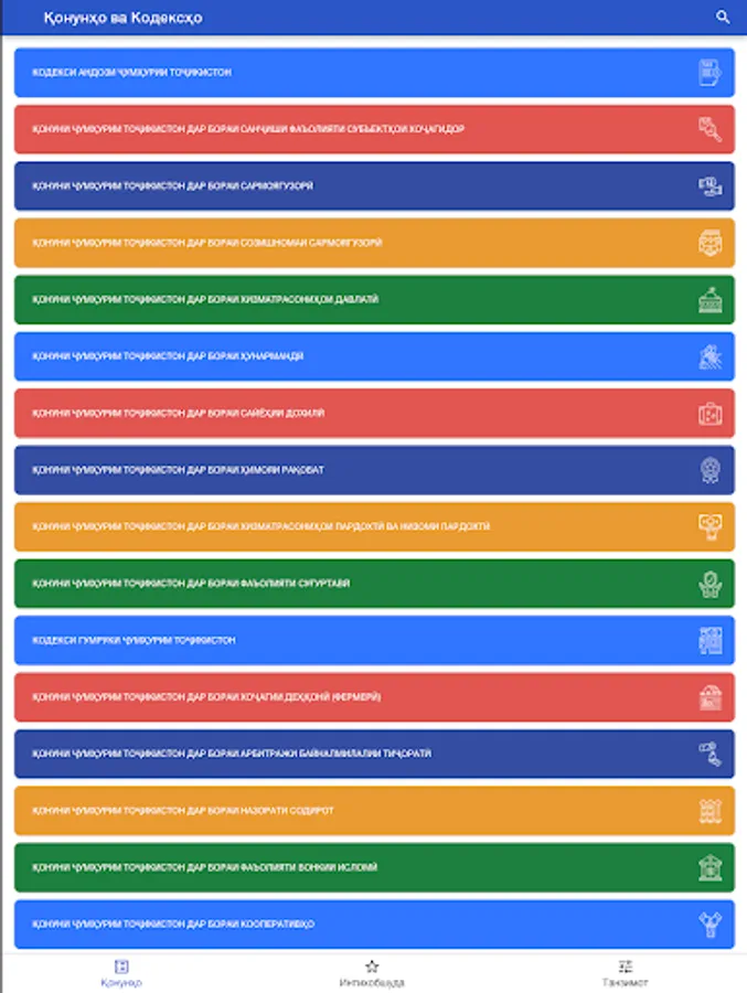 The mobile application "Sokhibkor" is intended for entrepreneurs operating in the territory of the Republic of Tajikistan. The application covers a wide range of entrepreneurs. The user will have access to a guide containing detailed information from the Tax Code, the Customs Code, the laws of the Republic of Tajikistan related to entrepreneurial activity, as well as an overview of the structure of the State Committee on Investments and State Property Management.