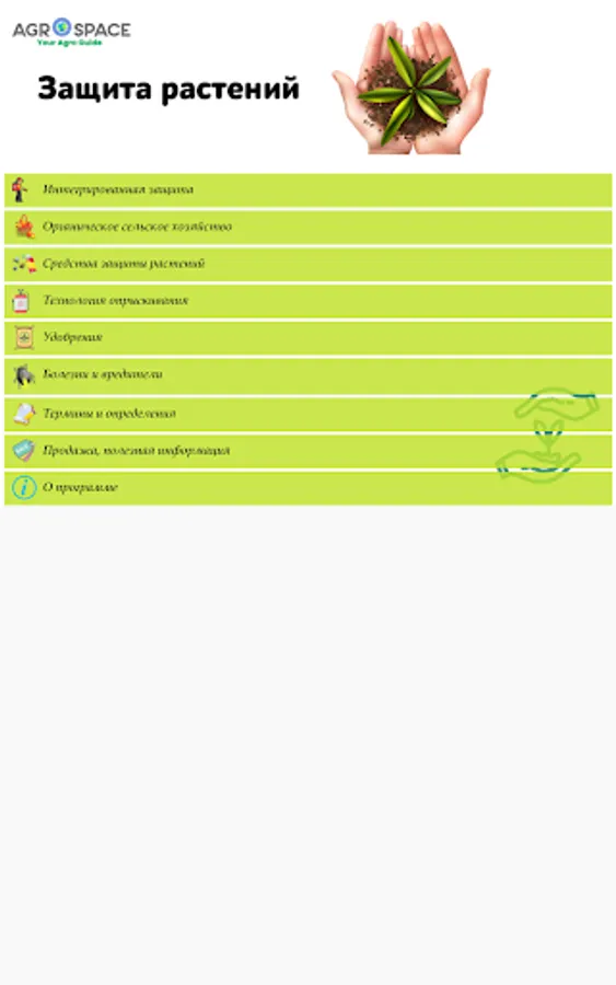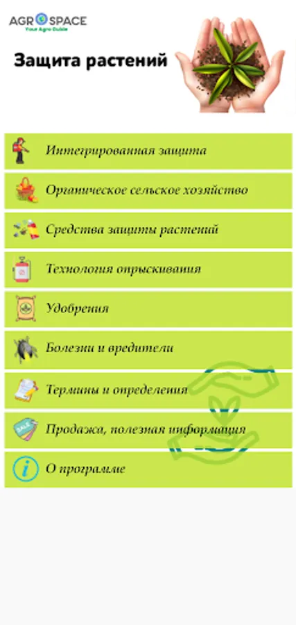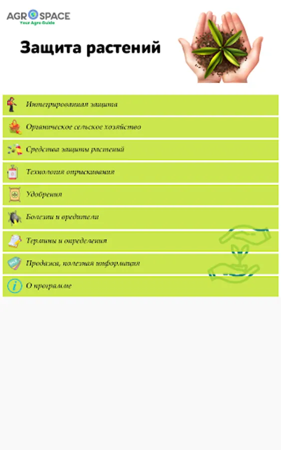Other useful information is transitions from the application to other tools of the AgroSpace platform: mobile applications, electronic bulletin board, library, agricultural maps, retail market prices for agricultural products, and more.