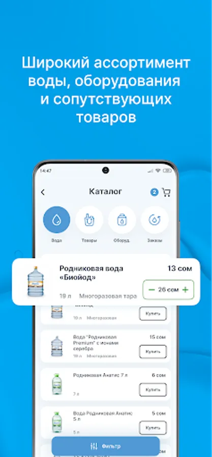 · Equipment and accessories. Equipment for water consumption is always available for our clients - coolers and pumps. In addition, we offer warranty service, cleaning and disinfection of equipment.