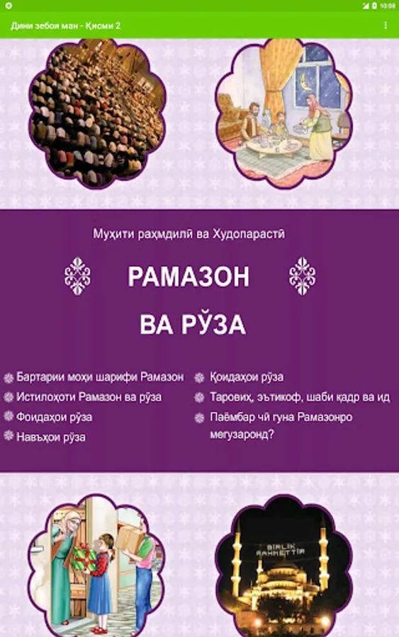 Mo ba Khudoi is thin shukrguzorem, ki ba mo dini mubini Islomro ato farmud! Durud wa raҳmati Hudo bar Pay Пambari mo Muҳammad (s) wa honadonu eronash, ki boe betarin rodi dini Islomro dar ҳayoti ud ҷorӣ namuda wa ba ҳamai mardumon onro omzonid.