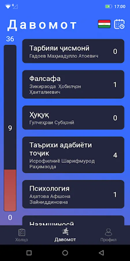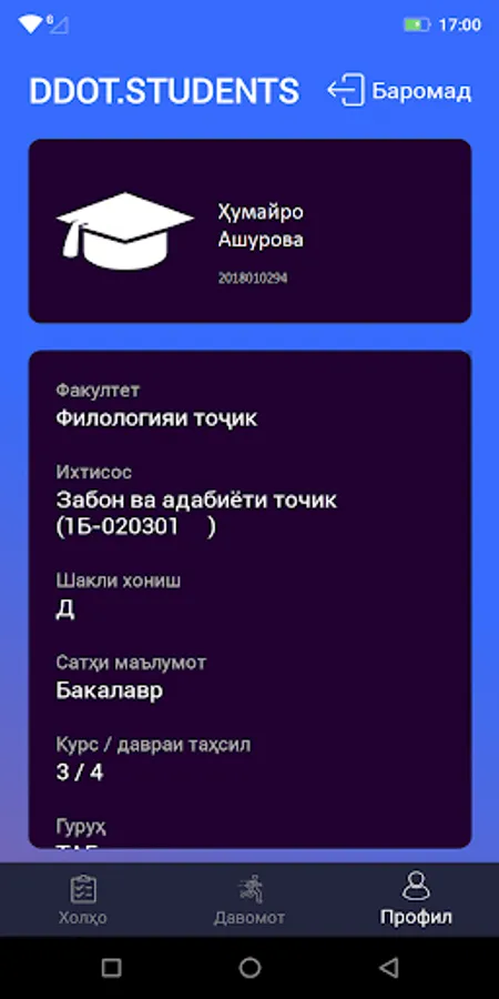 The DDOT.STUDENTS application is a personal account of a student at the Tajik State Pedagogical University named after S. Aini on a smartphone.