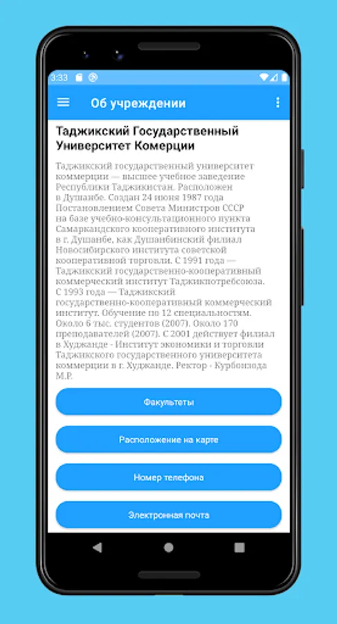 With it, you can get general information about all colleges and universities in Tajikistan. In addition, you can get acquainted with existing professions and get contact information about a particular institution.📍