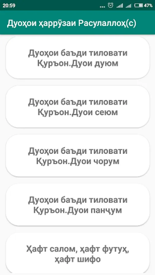 Khudovandi buzurg dar Kuroni karim baroi duo namudan 55 oyatro gandagonash arzony doshtaast, ki onkoro “Adiyat-ul Kuriyoniya” (du'oi Kururyon) gyand. Chande az namunoi onro baroi toliboni duo rui avroқ meorem, ki bo kalimai “Rabbano” or “mebad”.