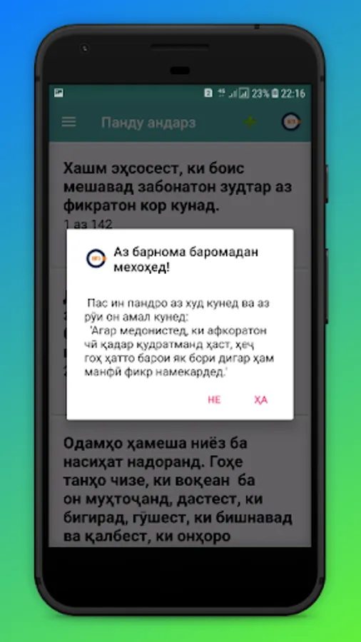 Barnoma al panda andarzҳoi iborat ast, ki bo ҳaoti movu Shumoro suhanҳoi thin taғyir mediҳad.