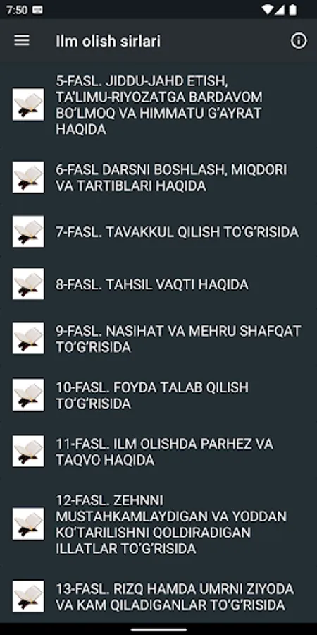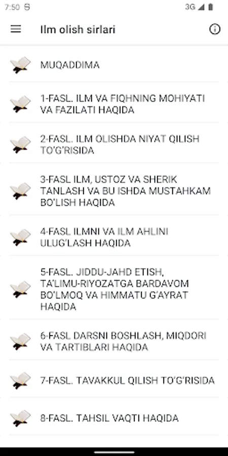 1.Ilm va fiqhning mohiyati va fazilati to'g'risida;