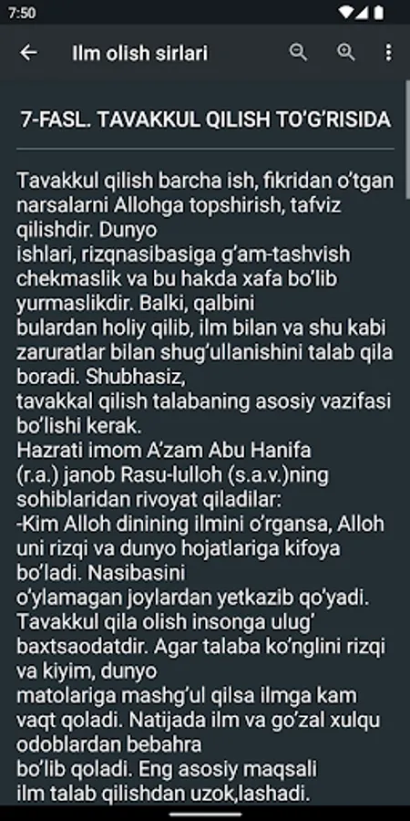 11.Ilm hosil qilish holatidagi parhezkorlik va taqvo to'g'risida;