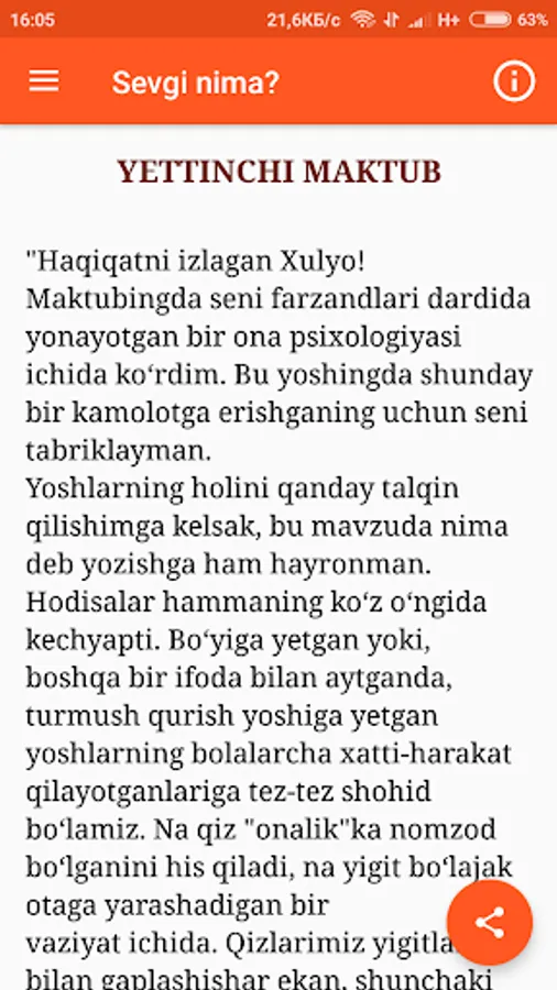hayot boshida o'zi uchun haqiqatni topib olishga urinib turgan Xulyo ismli qizga yozilgan maktublar ...