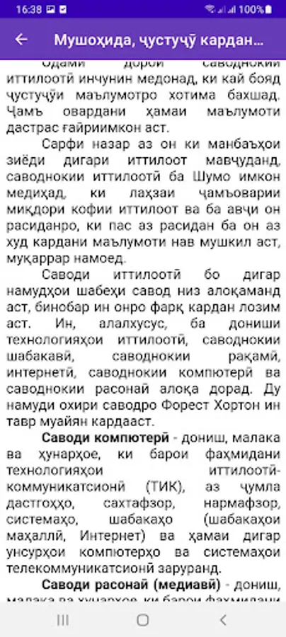 Rushdu tatbiqi farogiri technologyhoi ittilooti va communication dar muoshiratu tafakkur, tarzi hayot va ruzgori mo, fa’oliati shahsivu kasbi digarguni vorid kardaast. Ma'lum ast, ki ҷakhoni voқeii nasli navras digar ba ҷakhoni naslҳoi guzashta monand nakhohad bud; oyandai kadakoni imruza beshtar az kobiliati darku tahlil kardani ma'lumoti dastras va intihobu istifodai okilonai he aloqamndi dorad.