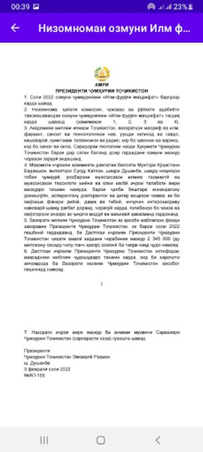 Nizomnomai ozmunkhoi Furugi subhi donoi, Ilm - furugi marifat va Tohikon - oinai tarihi millat