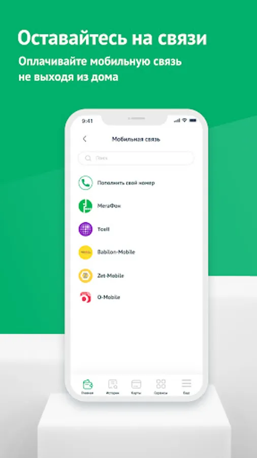 A simple and convenient service that allows you to pay for the services of mobile and Internet operators, television, housing and communal services, make transfers between cards,