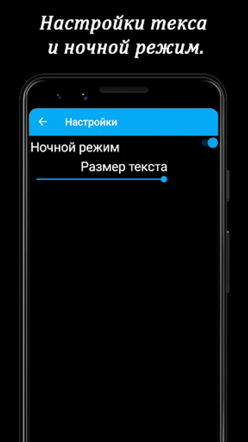 There is a "Settings" tab in which you can adjust the font size and enable Night Mode.