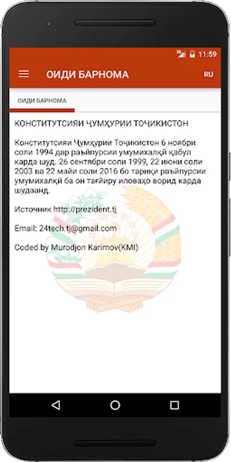 KONSTITUTSIYAI ҶUMҲURII Tojikiston BO TAҒYIRU ILOVAҲO 2016