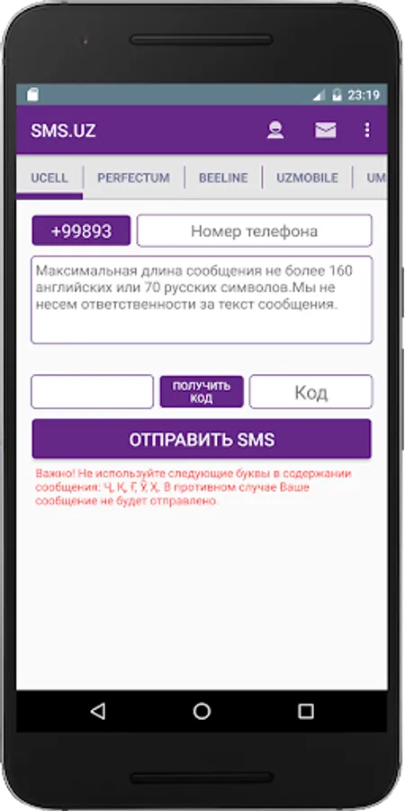 This program allows you to send free SMS to all mobile operators in Uzbekistan.