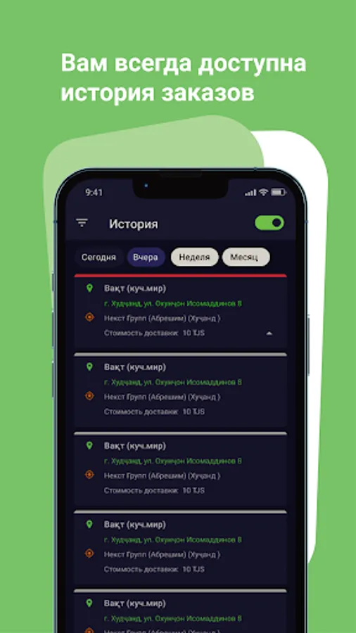 Also in this application there is an order history, where the courier can see his previous orders or orders of a specific date.