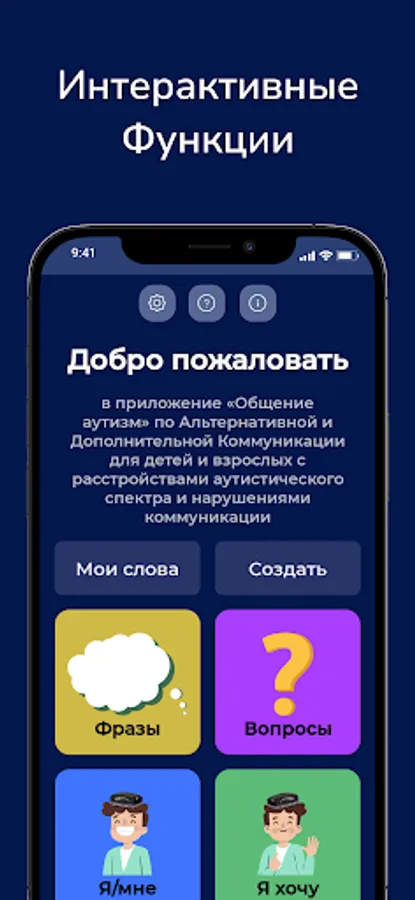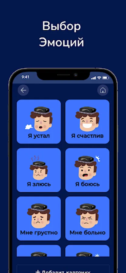 Flashcard application to facilitate communication for people with autism spectrum disorder. The application contains cards with voice acting in Russian and Tajik languages.