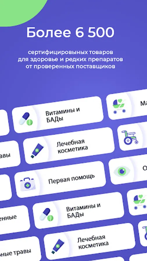 The entire range presented in the application is divided into categories that make it easier to find the necessary products for health and beauty. In addition to a wide range of medicines, the application contains vitamins and supplements, care products, professional cosmetics, products for newborns, pregnant and nursing mothers, medical devices, dressings, as well as products for those who play sports, monitor their nutrition and control body weight.
