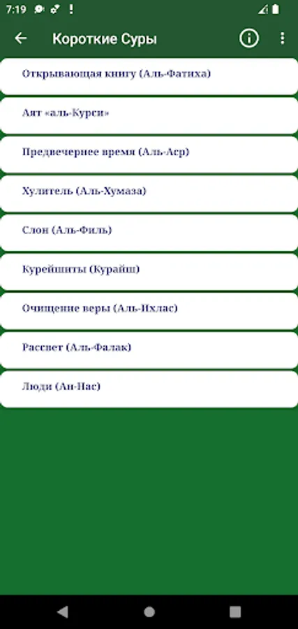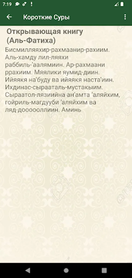 Sura 1 "Opening the Book = Al-Fatiha = الفاتحة", (number of verses: 7)