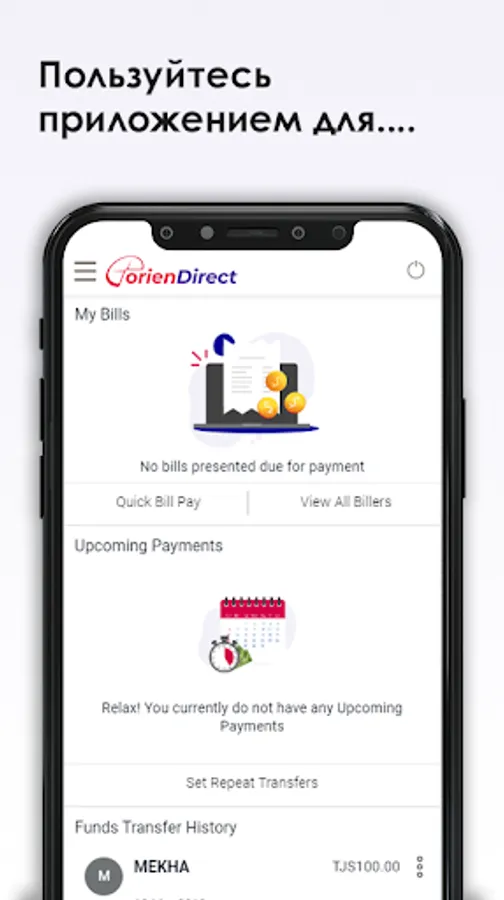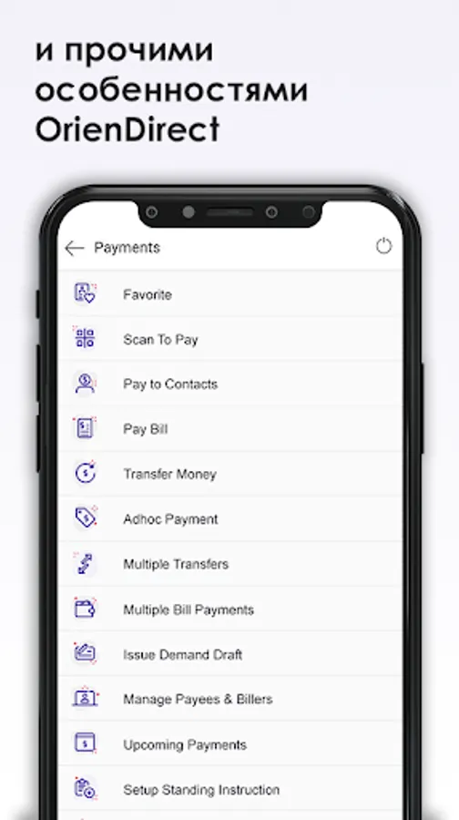— Просмотр баланса по всем счетам, вкладам и кредитам Ориенбанка;
