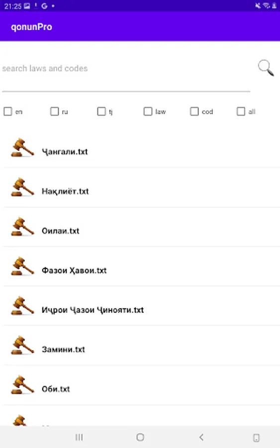 Электронная коллекция законов и кодексов , ресурс: http://mmk.tj/, https://www.andoz.tj/, http://ncz.tj/legislation, https://www.vkd.tj/ и другие.